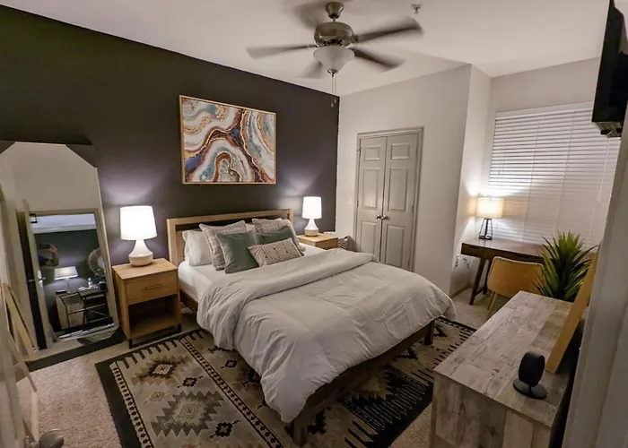 **Welcome to The Mid-Century Modern Apartment Houston**, an inspiring retreat that celebrates the timeless elegance of mid-century design. Nestled in the heart of Houston, this boutique apartment offers a serene escape just 70 minutes by car from Ensemble/HCC, making it ideal for both leisure and business travelers. The apartment's striking architecture and carefully curated interiors create an inviting atmosphere that harmoniously blend style and comfort.